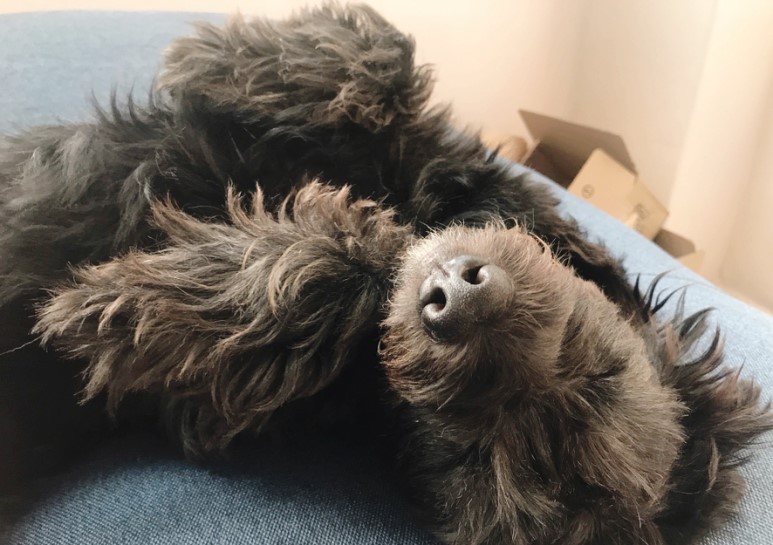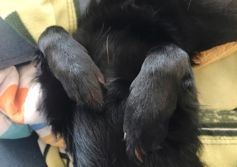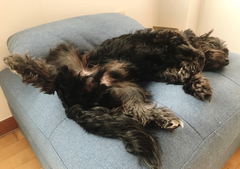루이와 구름이가 완전 똑같아요. 저렇게 발을 모아서 자고 있어요. 다른 강아지들은 누워서 자는 거 별로 안좋아하는 거 같은데, 루이와 구름이는 세상에서 제일 편한 포즈로 잠을 자고 있어요. 마치 사람이 잠을 자고 있는 것 같아요.