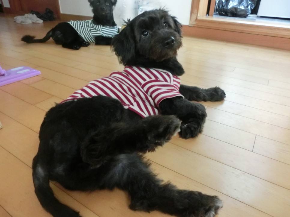 아직 사료를 줄 지 모르는 구름이와 루이, 이제 밥 먹을 시간인데 뭐하고 있는거니? 구름이는 저렇게 뭔가 다리를 올리고 있더라구요. 이 사료를 먹으면, 피모 윤기, 원기회복, 근골격발달, 소화원활 등 강아지에게 참 좋은 것 같더라구요. :)