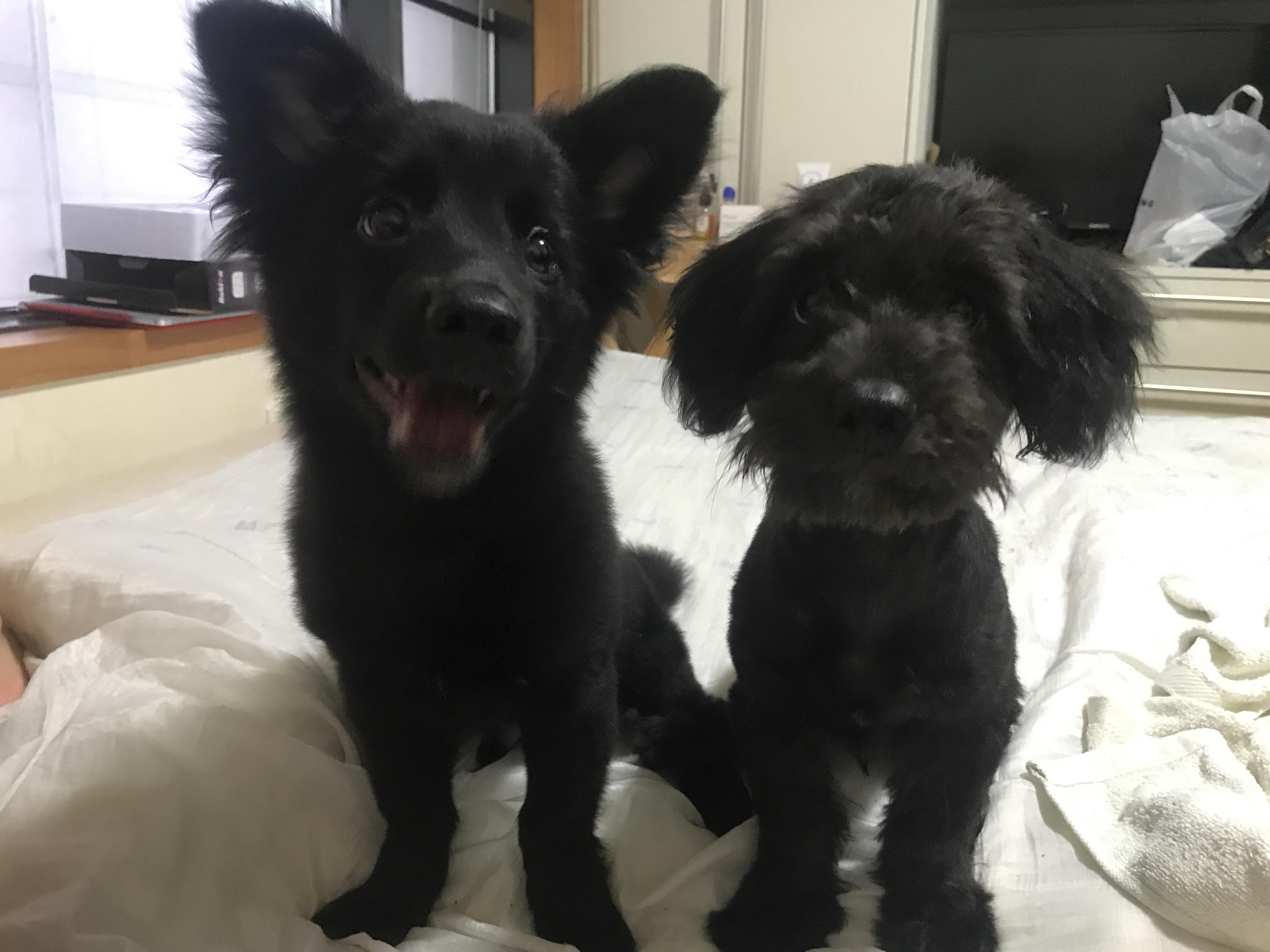 강아지를 두 마리 키우면 서로 따라하는 습성이 있어서 한 마리만 제대로 알려줘도 금방 배울 수 있어요.