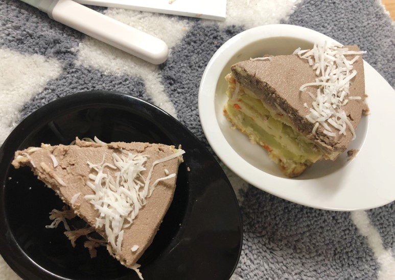 당근도 들어있는 것 같고 고구마도 들어있는 것 같았어요. 이것저것 많이 들어가있어서 다 뭘로 만들어졌는지는 모르겠지만 강아지들이 잘 먹을 수 있는 재료들로 만들어졌어요. 만약에 강아지 수제케이크 의뢰할 때, 알레르기가 있는 성분이 있으면 미리 말씀을 나눠서 의뢰하시면 좋을 것 같아요.