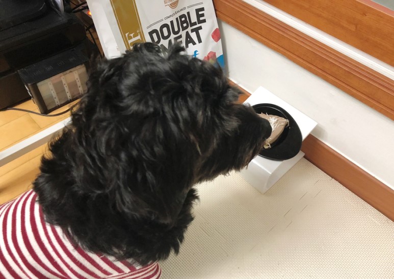 이렇게 평소에 먹는 강아지 밥그릇에다가 한조각씩 담았어요!