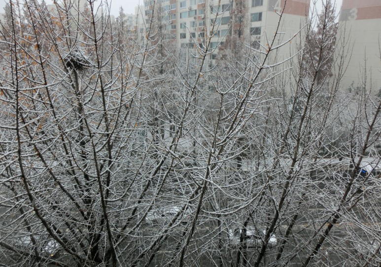 아침 8시쯤에는 진짜 폭설처럼 하늘에서 눈이 펑펑내리더라구요. 작년보다 이번에 눈이 조금 더 빠른 것 같아요. 보면서 신기하더라구요. 하늘에서 내리는 눈을 보니까 진짜 올해 겨울이 벌써 이렇게 왔나 싶었습니다.